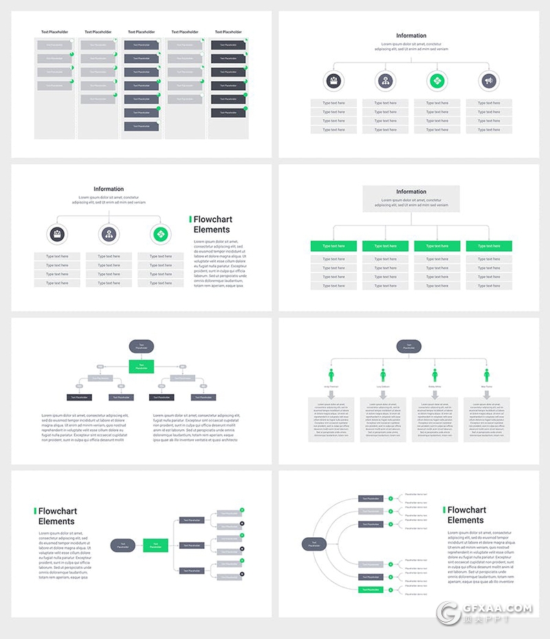 31页项目流程图组织架构图PPT模板5种XML配色文件