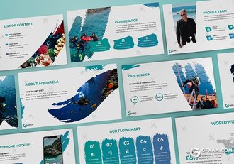 30页海洋生物深海海底潜水宣传介绍Google slides模板5种主题配色