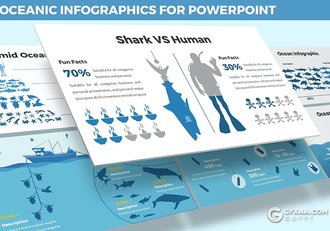 30页国外扁平化海洋生物介绍统计Google slides模板5种主题配色